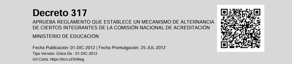 APRUEBA REGLAMENTO QUE ESTABLECE UN MECANISMO DE ALTERNANCIA DE CIERTOS INTEGRANTES DE LA COMISIÓN NACIONAL DE ACREDITACIÓNMINISTERIO DE EDUCACIÓN